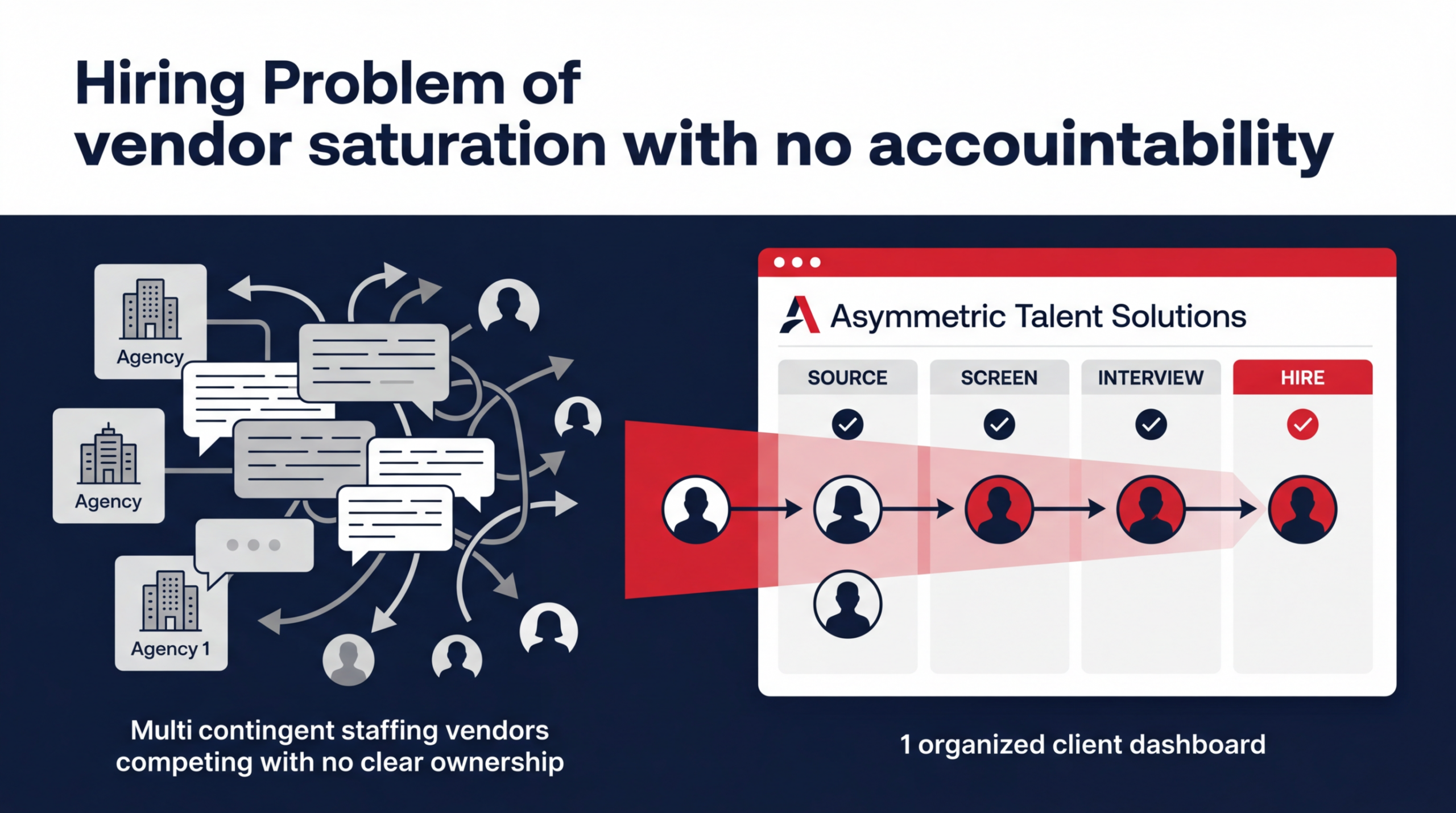 🛠️ The ATS Approach: Asymmetric Talent Solutions runs sourcing like a special operations mission. We target, map, and lock every high-value operator in your market before the other guys even finish their morning coffee. No random blasts. No “pray and spray.” We use proprietary deep search, surgical outreach, and accountability so thorough that our clients literally burn their old vendor lists (“industry rife with wastes of carbon”). We don’t just build talent networks—we build trust clusters. Our results: 100% search closure, absolute candidate quality, and not a single wasted minute.